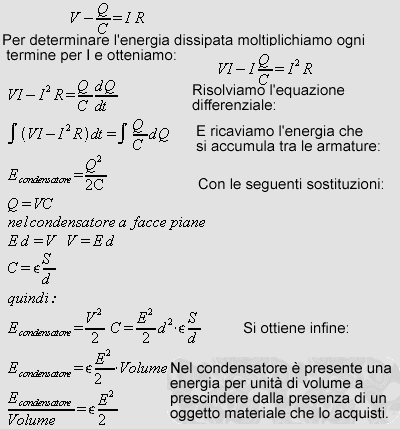Quindi tra le armature si accumula Energia elettrica, energia presente nello spazio e che non si trasferisce a nessun oggetto materiale. E' lì e basta.