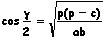 a2 = b2 + c2 - 2 bc cos α b2 = a2 + c2 - 2 ac cos β c2 = a2 + b2 - 2 ab cos γ |